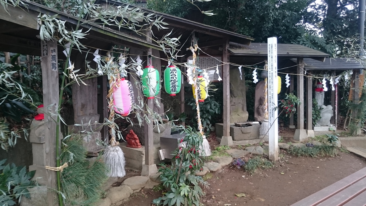 矢切神社のすぐ近くにあります。小さな敷地に青面金剛、馬頭観世音、地蔵尊などが並びます。地名の由来が書かれた石碑によると、戦国時代の国府台合戦の悲惨さに弓矢を呪い「矢切り」「矢切れ」「矢喰い」の名が生まれたそう。平和への願いが込められた塚です。