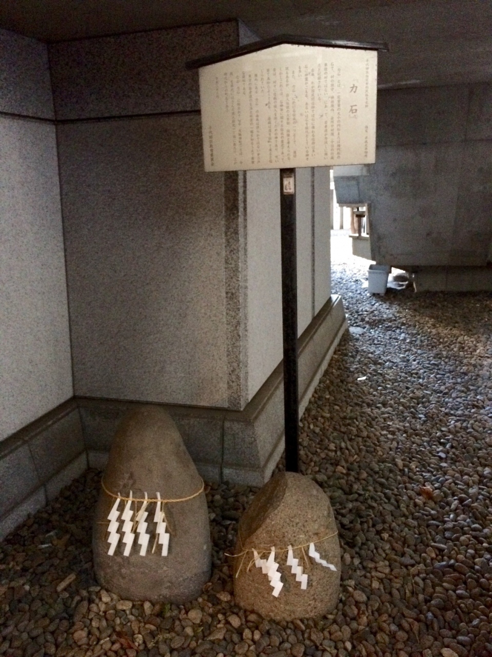 九段下にある築土神社境内にある力石。説明の札がなければ通り過ぎてしまいそうな佇まいですが、文化的には重要なものであるらしく、千代田区の有形民俗文化財に指定されています。わかりにくいのですが、石には漢字で重さが書かれており、若者の力比べに使用されていたそうです。