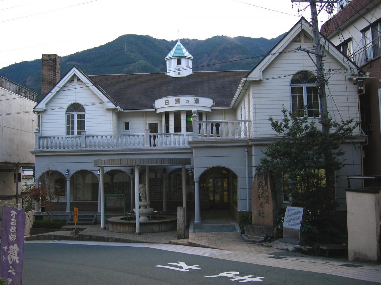 温泉街には場違いな、白亜の洋館の共同浴場「白鷺の湯」があった。