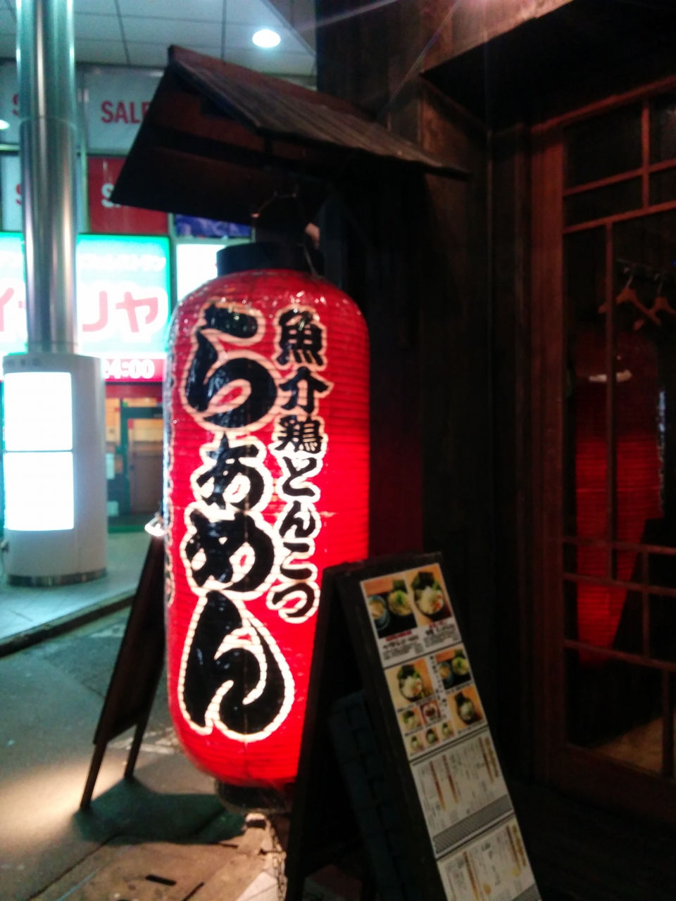 神保町駅からすぐです。大きな赤い提灯が目印。比較的最近できたお店です。いつも人でにぎわってます。味は、魚介系も入った醤油とんこつみたいな感じだったと思います。けっこう濃厚で、がっつりた食べたなーって感じになります。おいしいです。