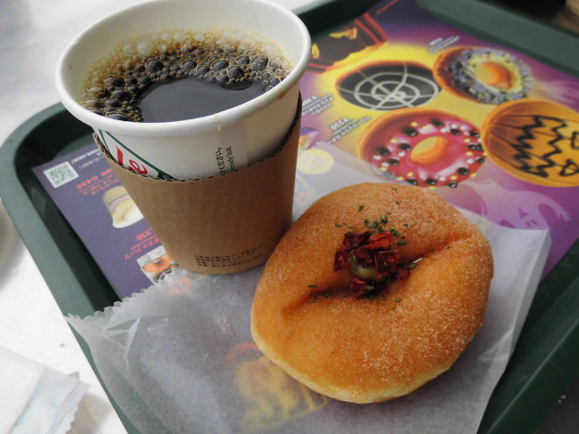 甘いドーナツは苦手なのですが、トマトソースのものがあったので、コーヒーとセットでいただきました。