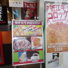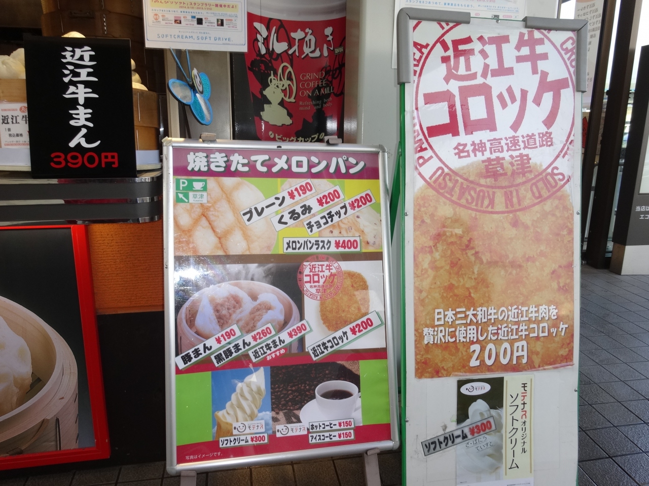 東名高速道路 草津パーキングエリアにあるスナックコーナーです。地元産の近江牛を使った牛まんやコロッケを食べることができます。牛まんは、やや価格は高いですが、大きくカットされた柔らかい牛肉が入っており食べ応えがあります。その他、その場で焼き上げるメロンパンもサクサクで美味しかったです。