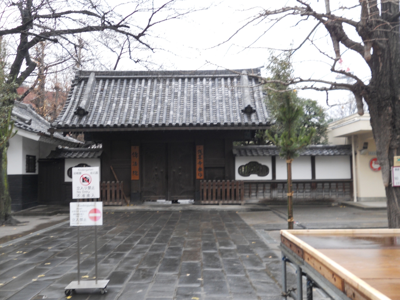 雷門から入ってまっすぐ進み、伝法院通りを左に曲がると門で閉ざされた建物が見えてきます。浅草寺の本坊(住職の伝坊)であり、建物の一部は安永6年にもさかのぼる浅草寺の中で最も古い建物だそうです。裏手に伝法院庭園もあって国の名勝に指定されていますが、現在は非公開となっています(一般公開される日もあるそうです)。