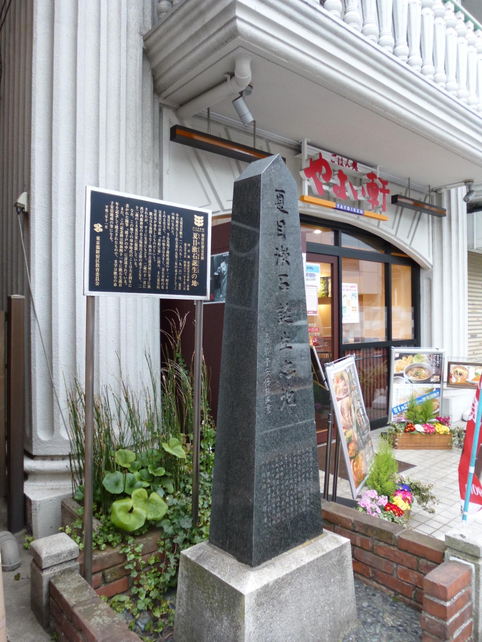 地下鉄早稲田の駅を出てすぐ、夏目坂の登り口の左側に「夏目漱石誕生の地」の石碑と案内板があります。案内板の表示によると、漱石生誕100年を記念して昭和41年に造られた石碑とありますが、大学生時代には全く気付きませんでした。