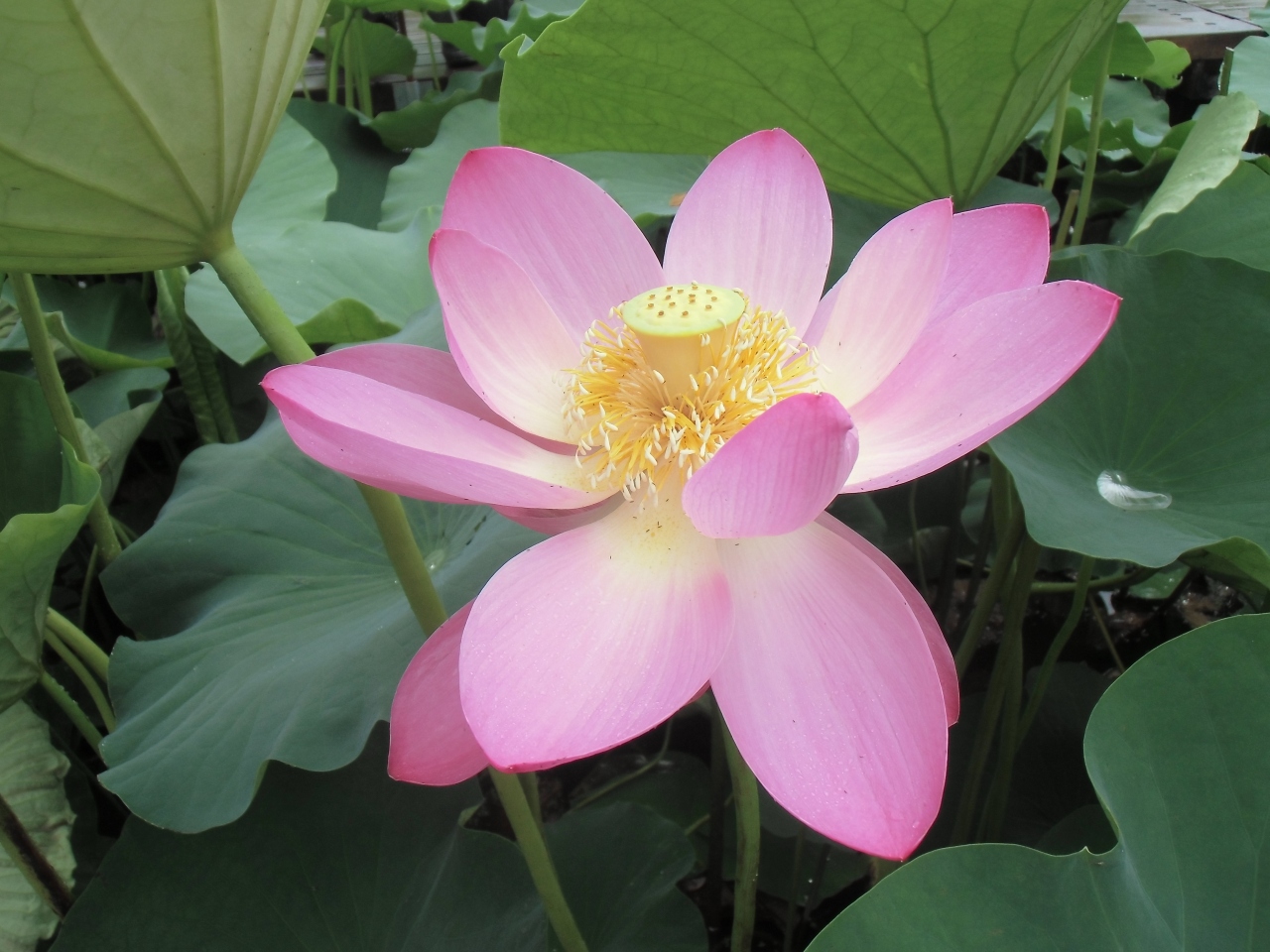 遺跡から発掘された古代のハスの実(約2000年前)を大賀博士が発芽育成させたもの、その後蓮根や実などから育っている。当日は雨でしたが「駅からハイキング」で参加された方が大勢で大賀ハスの花を見に訪れていました。千葉市では交雑した種子で繁殖をしないようにしているそうdす。