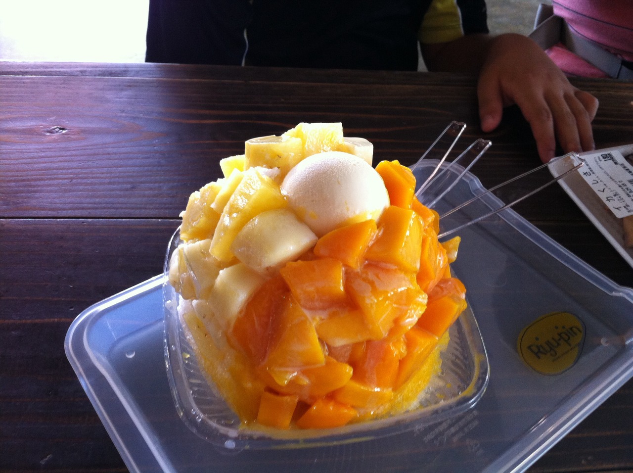 私たちが行った日も、なん人か並ばれていました。そして、マンゴーかき氷は、販売中止になりました。ミックスにのってる僅かのマンゴーを味わい、