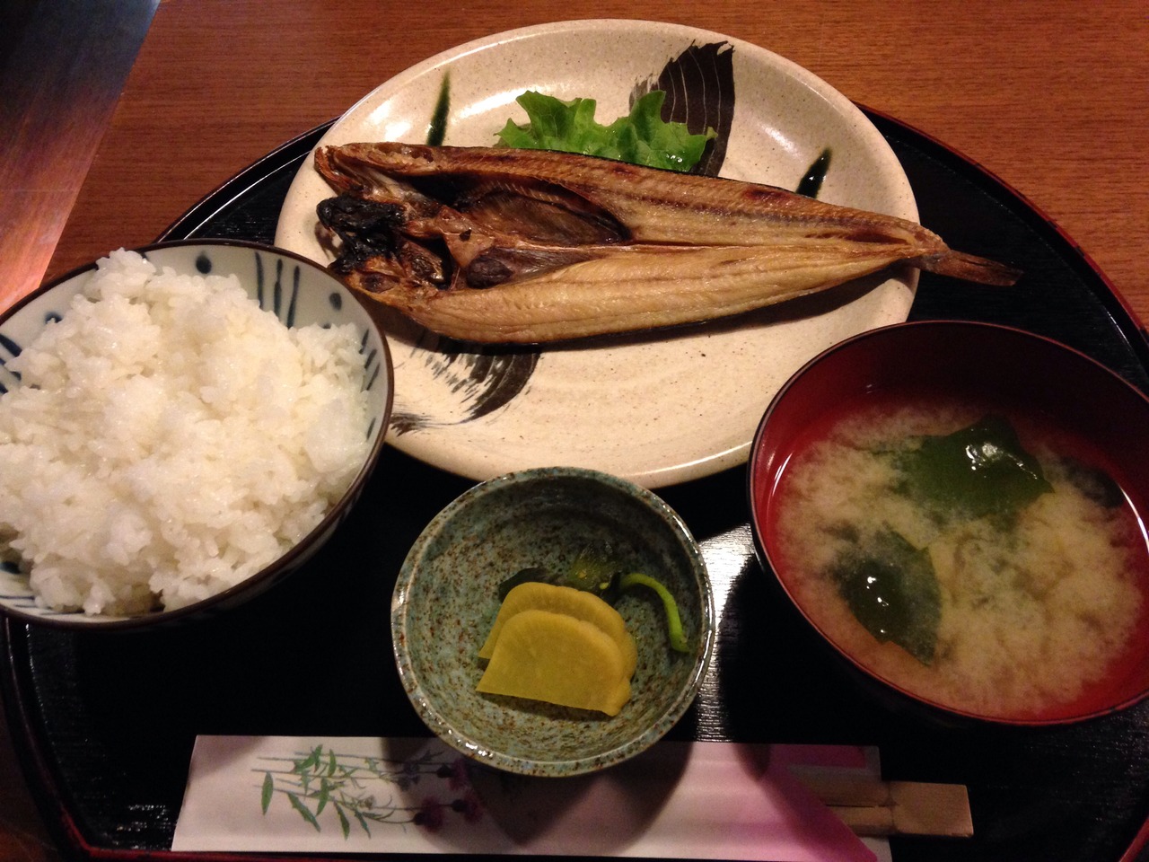 定食は,ほっけ焼き,ご飯,みそ汁。