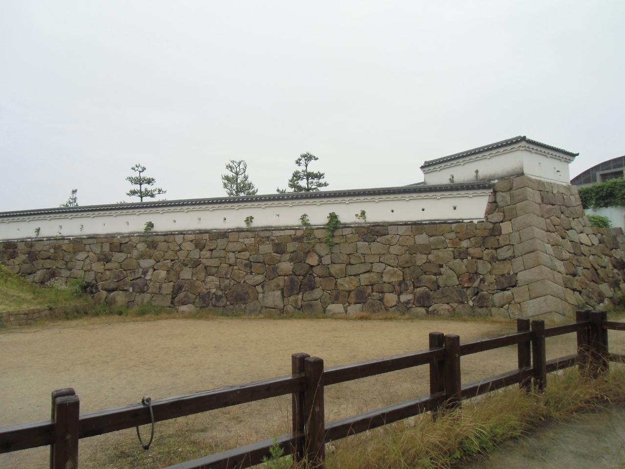 ちょうどNHKの大河ドラマ「軍師 官兵衛」が放映されていたので伊丹の有岡城と併せてよってみました。かつては4重の天主があったそうですが、現在は尼崎市立中央図書館に隣接して城壁・石垣が模擬再建されています。お向いの桜井神社に尼崎藩主戸田氏時代の鬼瓦があります。