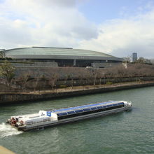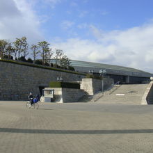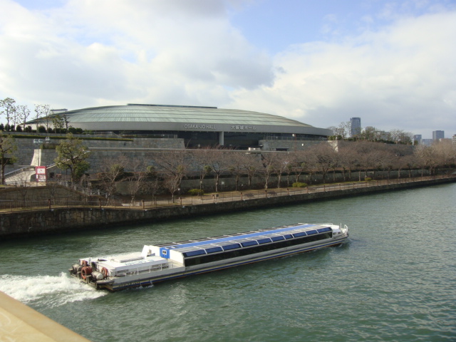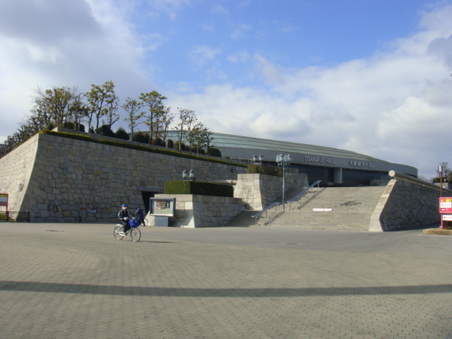 1983年に大坂城築城400年を記念して大坂城青屋口に建設されたアリーナを有する施設です。設計は東京ドームやさいたまスーパーアリーナなどを手がけた日建設計です。このホールの特徴は、大阪城に近接しており周囲の景観を損ねないよう、本体部分が地下に埋め込まれています。他のドームやアリーナに比べてペッタンコな感じがしたのは、このためですね。