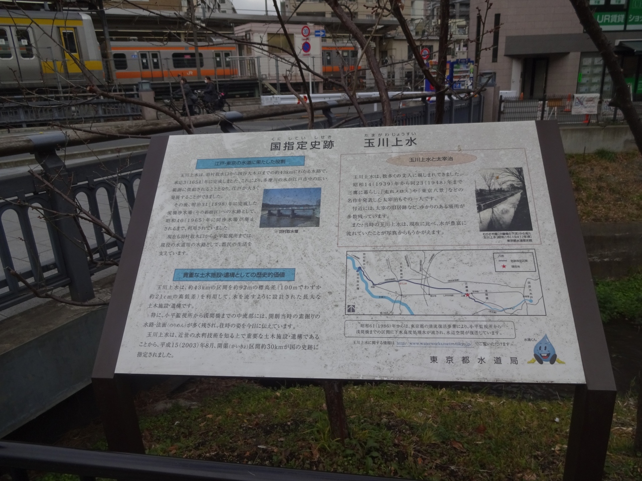 羽村の取水堰の辺りはサクラの名所でもあるし、多摩エリアの玉川上水沿いは遊歩道になっているところが多く、散歩道として今も楽しまれている。