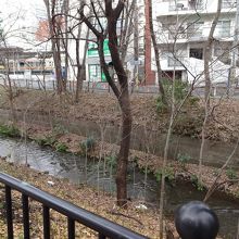 この三鷹駅の辺りは線路の下を潜り、夏は木々に覆われているが、この時期は冬枯れの木々の中、水路もよくながめられる。