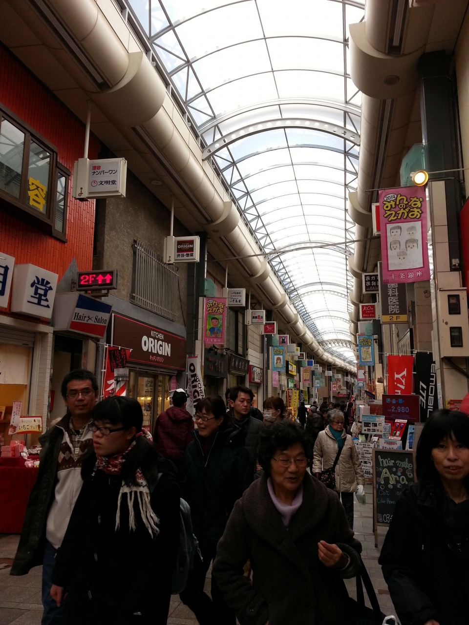 狭い通路の両側にお店が競い合ってます。アーケードになっており天井があるので