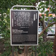 入って左手側の隅っこ、駐車場のわきみたいな場所なので目立ちませんが、並んで赤穂浪士や絵師の墓や供養塔があります。