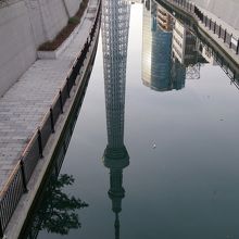 押上駅から7~8分ぐらい亀戸訪問に歩くとある普通の橋でスカイツリーができるまでは単なる橋でしたが、スカイツリーが建って、この下に流れる十間川の川面にスカイツリーが一直線に映りまさに逆さスカイツリーという感じです。