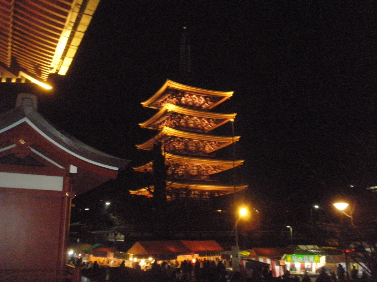 お正月に訪れました。仲見世のたいへんな人ごみの中をかきわけ、雷門を通過すると、浅草寺の立派な光景が広がります。初詣の人たちでごったがえしていました。カメラを抱えた外国人観光客の姿も目立ちました。夜景が見事です。