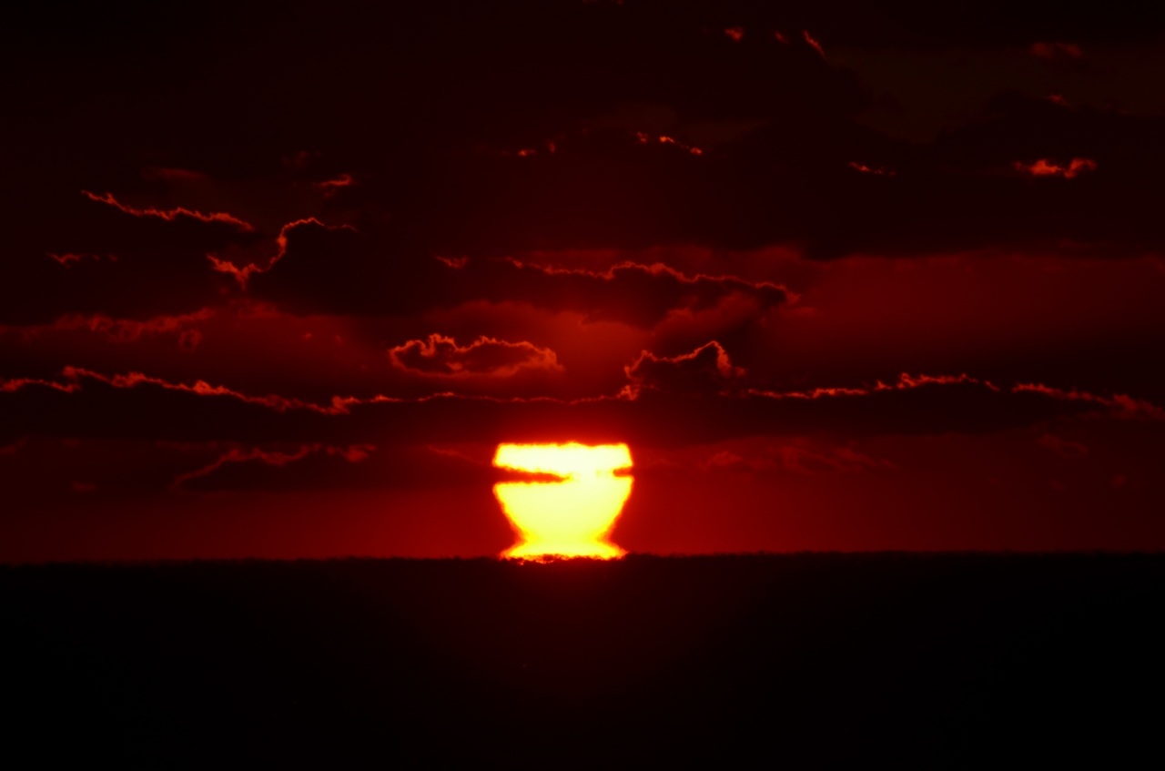 祈るような気持ちで待っていると、水平線には奇跡的に雲がなく、水平線に沈む夕日を拝むことができました。