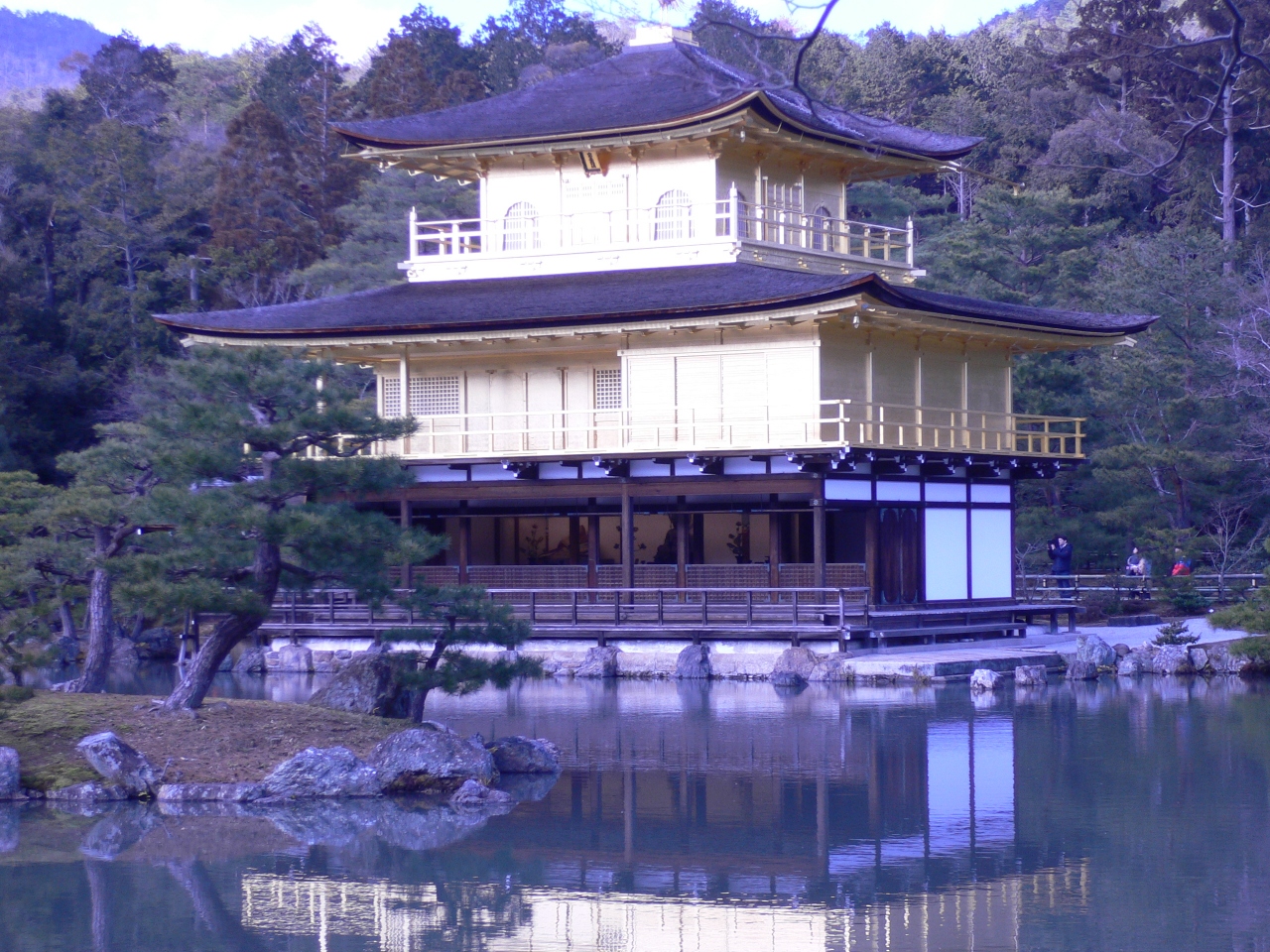 池に映る金閣もきれいです。雪の金閣はもっと美しいと思いますが…