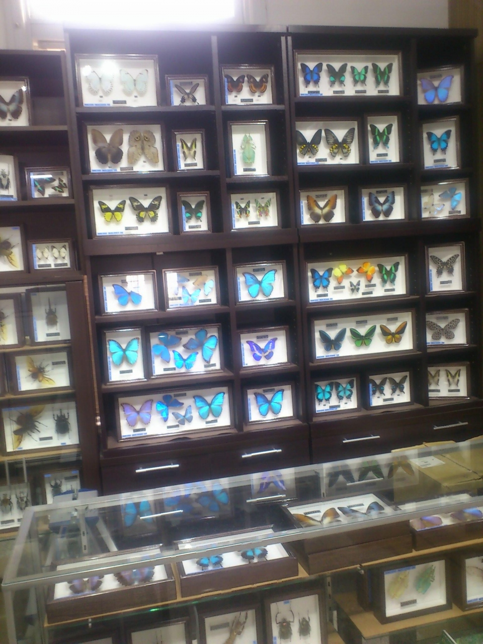 岐阜公園の南端、岐阜市歴史博物館の近くにあります。岐阜蝶の名付け親である名和氏が作った昆虫博物館です。入館料は500円と少し高めですが、中に入るといろいろな昆虫の標本があって、圧倒されます。特に蝶類とカブトムシの標本が豊富です。2階もあって、そこではクイズが出題されています。