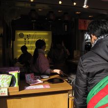 おやつタイムには半端な時間だったからか、さほど待つこともなく買えました。イートイン(というのか?)スペースはお店の脇にあり、ロープが張ってあります。