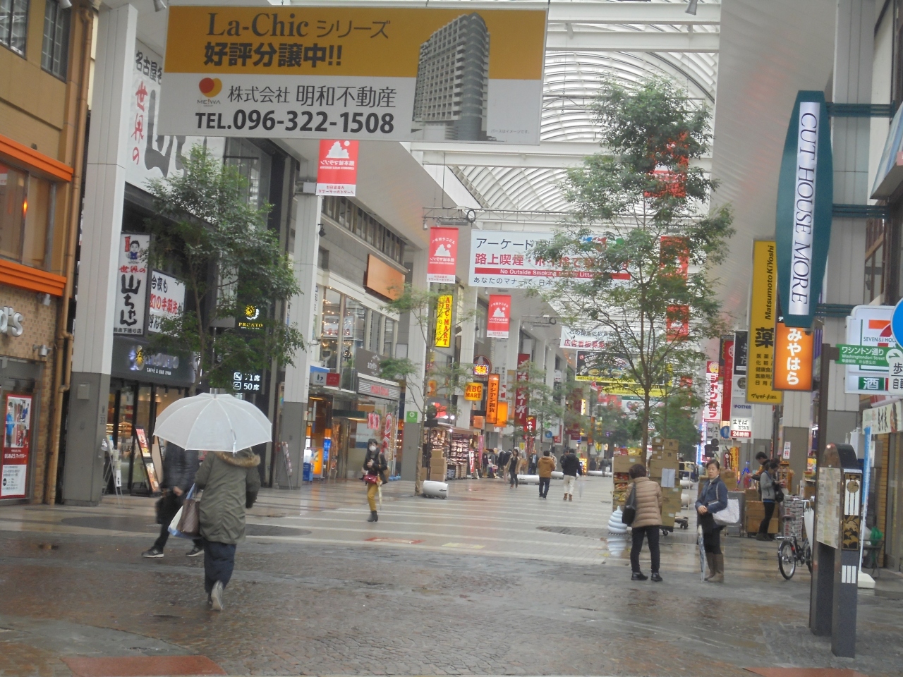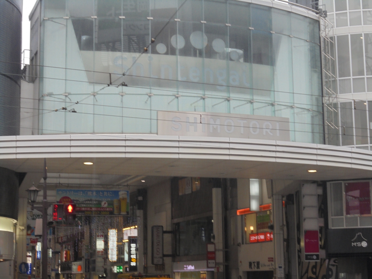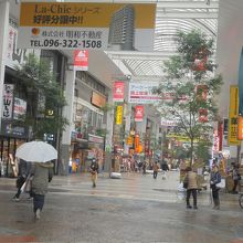 熊本市の街中にあります。市電通町筋電停から降りてすぐです。アーケードになっています。さまざまな店があります。ダイエーはなくなりましたが、飲食店、コンビニ、ドラッグ店、洋服店、カラオケ店など色々なお店がたくさんあります。