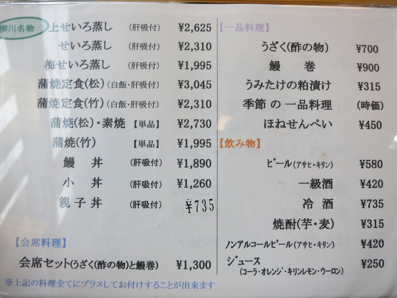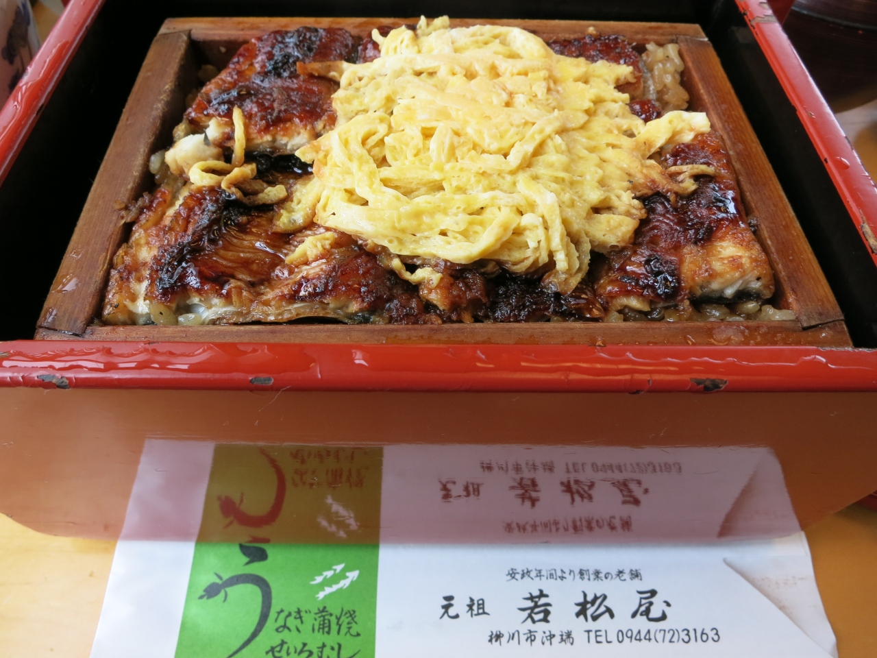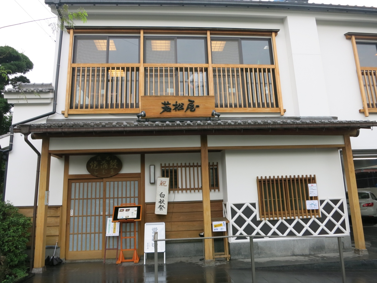 柳川でのランチは柳川名物のうなぎのせいろ蒸しを絶対に食べると決め、いくつかあるせいろ蒸しのお店の中、お堀の川下り降船場の近くに店を構える若松屋に入りました。白州祭の日で並ぶかと思いましたが、待たされることもなく2Fのテーブル席に通されました。
