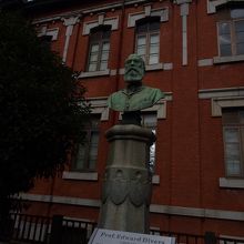 東京大学の構内にはこの像をはじめとしてさまざまな人物の胸像、立像があってそれを巡るだけでもなかなか面白いんですが、そのうちのひとつがこのダイヴァース博士像です。赤レンガを背景に立っていて趣があります。