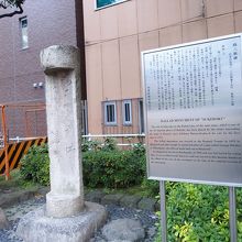 浅草の住宅街の中にある花川戸公園の一角にあります。公園はちょうど工事中なのか一部は立ち入り禁止になっていて、碑自体も埋もれている感じで目立たずひっそりとしていました。