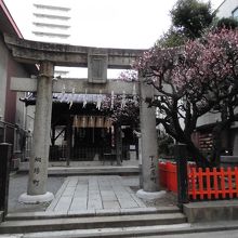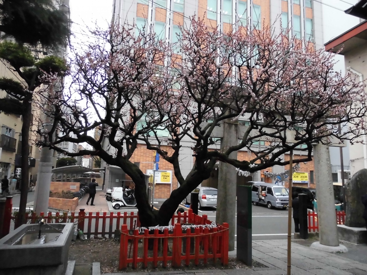 鳥居の横にある、梅の木が満開でキレイでした。まるで桜のように大きな木でしたね。