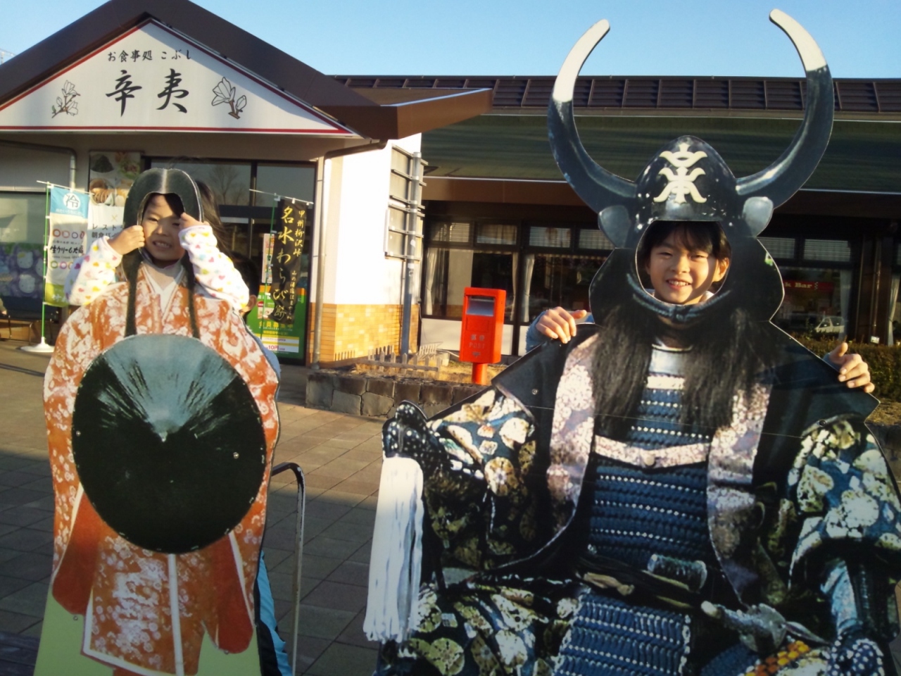 武田信玄ゆかりの地だけに、サービスエリアにも工夫があって、子供たちも大喜びでした。
