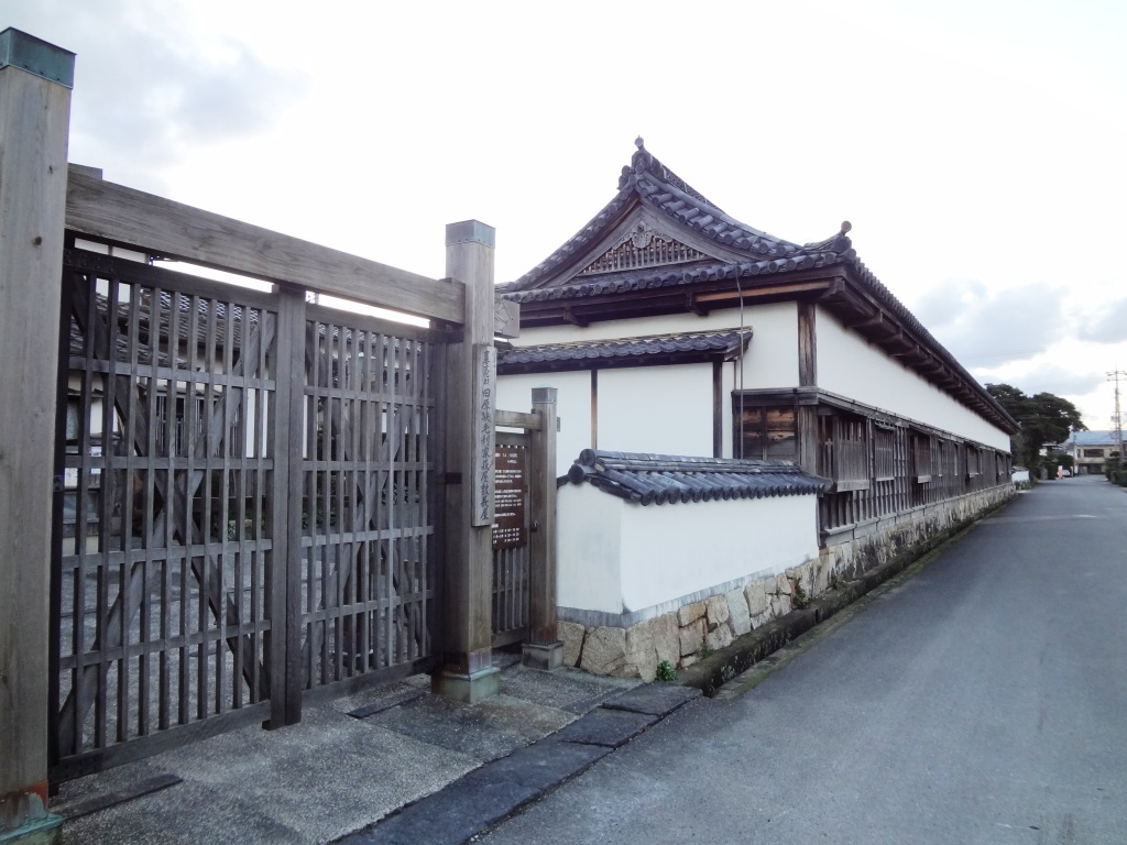 江戸時代、長州藩の本拠の萩城があった萩城跡指月公園から南に向かい駐車場に到達すると、長ーい白壁が続く立派な屋敷が見えました。国の重要文化財である厚狭毛利家萩屋敷長屋です。毛利元就の五男を祖とする厚狭毛利家の萩の屋敷で、かつては広大な敷地に母屋などがありました。明治に入って解体され、残るは長屋のみとのこと。到着したのが既に夕暮れだったため、門は閉まっており見学はできませんでした。主な建物がないといえども、萩に現存する武家屋敷としては最大の規模を誇るそうです。豪華な詰め所のような場所も残っており、ちょっとチャンスを逃したなと見学できず残念でした。