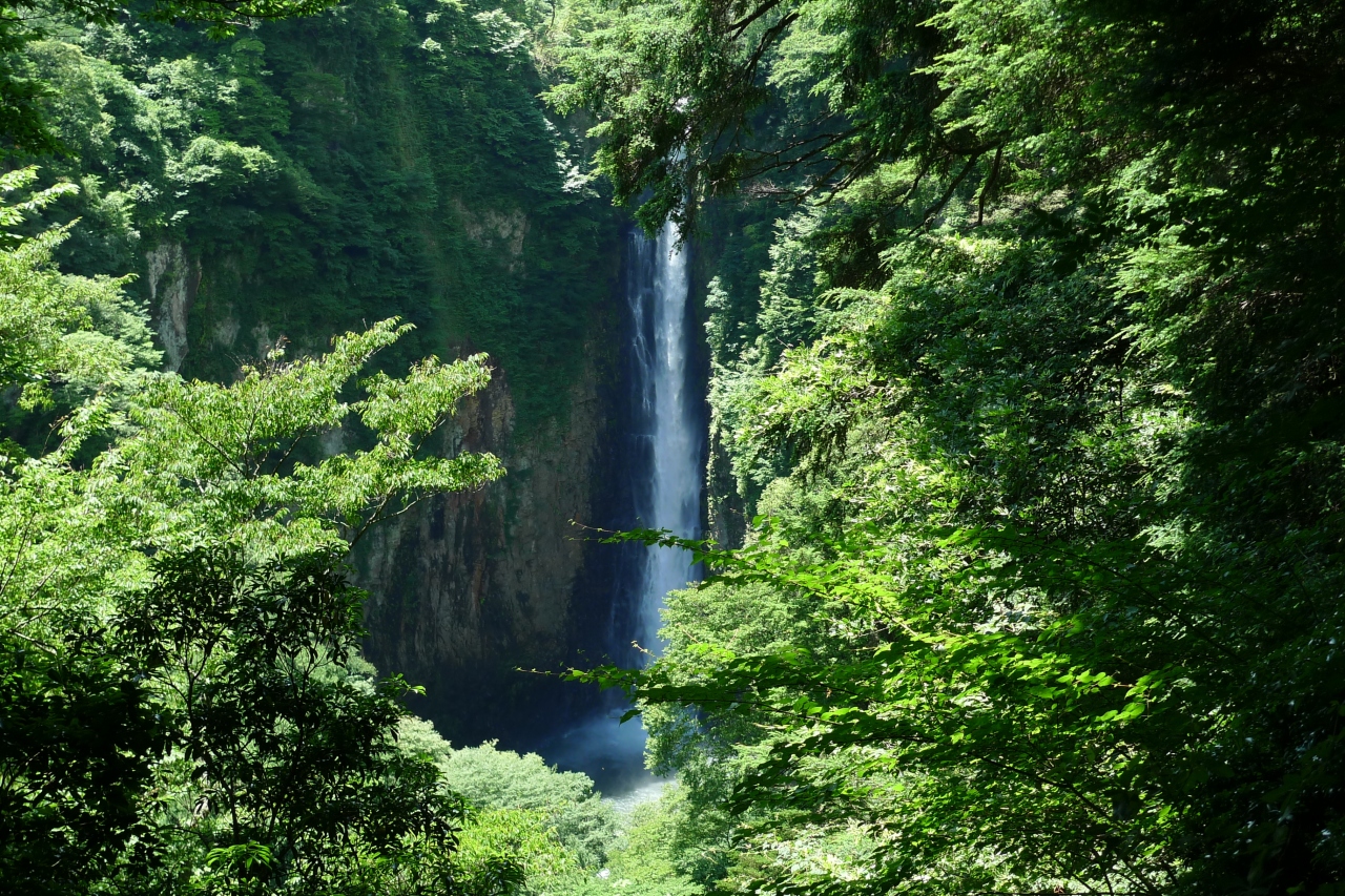 滝百選にも選ばれているこちらの滝はその姿もさることながら、周りの風景とあいまってその美しさが増幅されます。私が行った時は初夏でしたが緑が深く、白い滝とのコントラストが非常に美しかったです。高いところが見るので、その全景を見る事が出来て、とても感動しました。