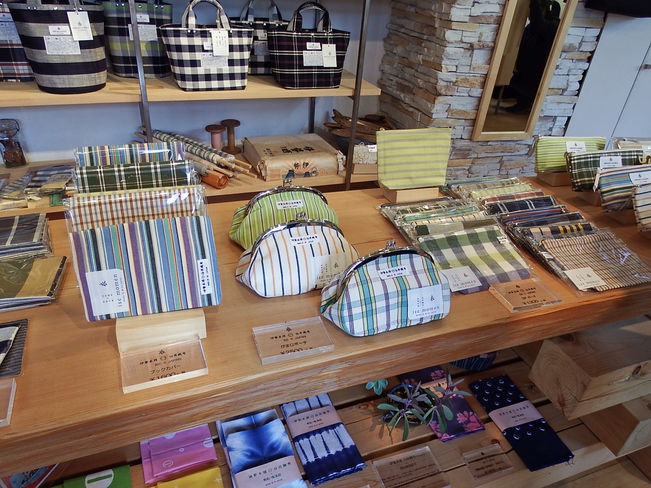 伊勢木綿製のバックや小物が並んだ小さなショップですが、気になって立ち寄りました。
