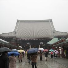 雨でも賑わう浅草寺