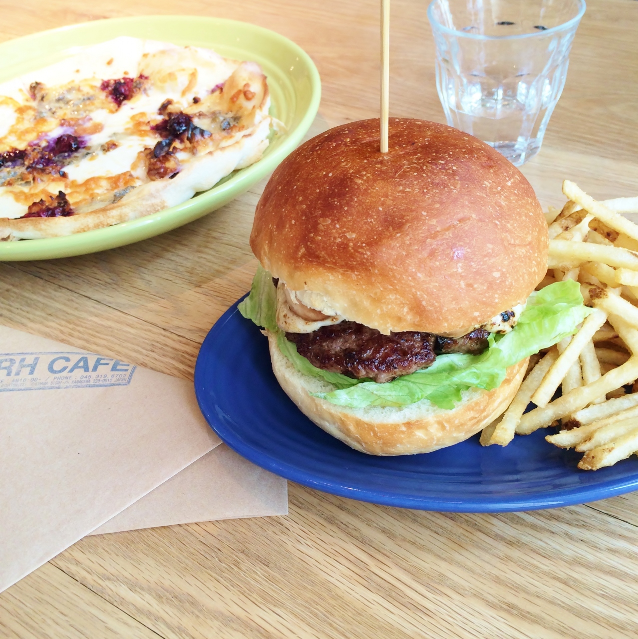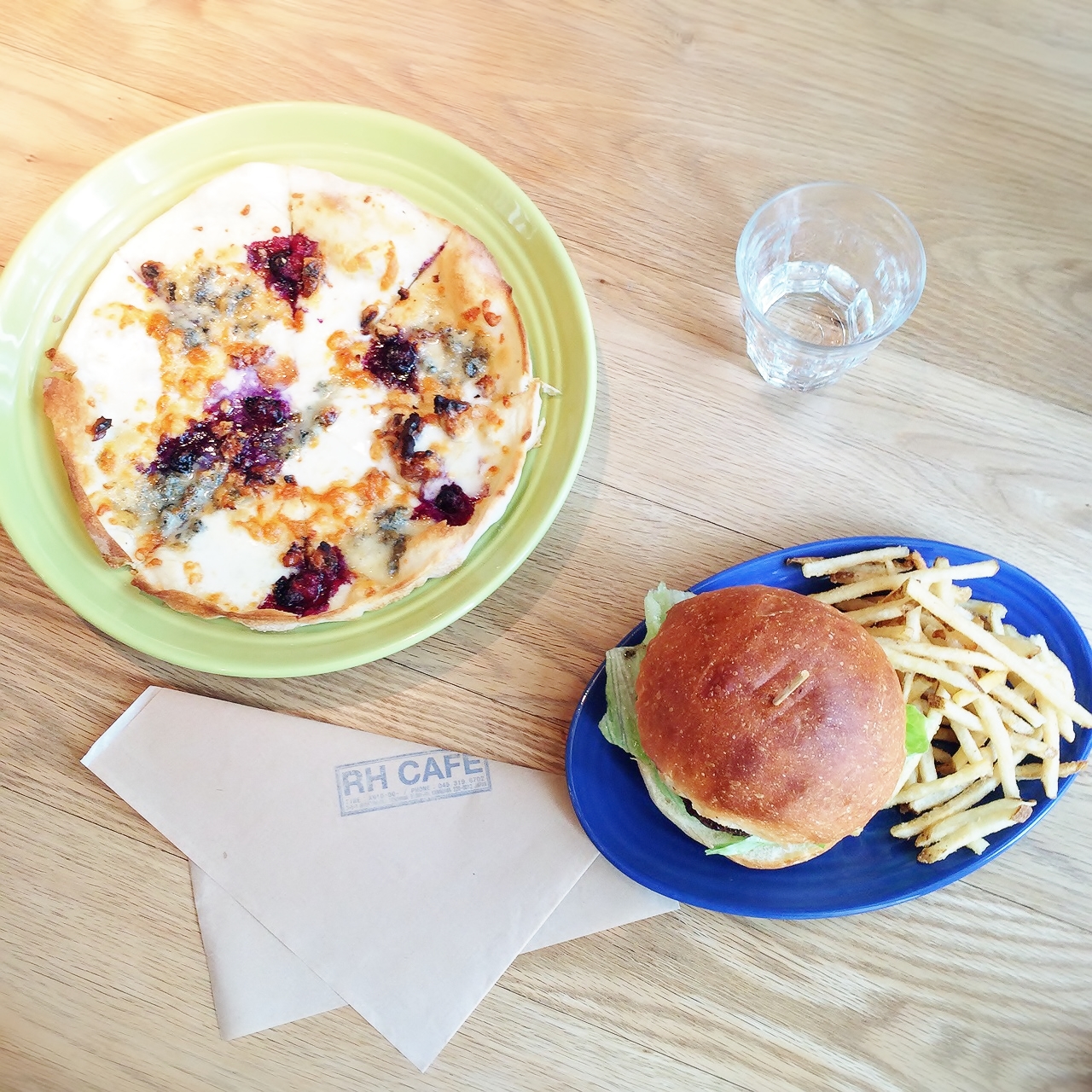 悩んだ末、バーガーランチセットとゴルゴンゾーラ&ブルーベリーのピザを注文。