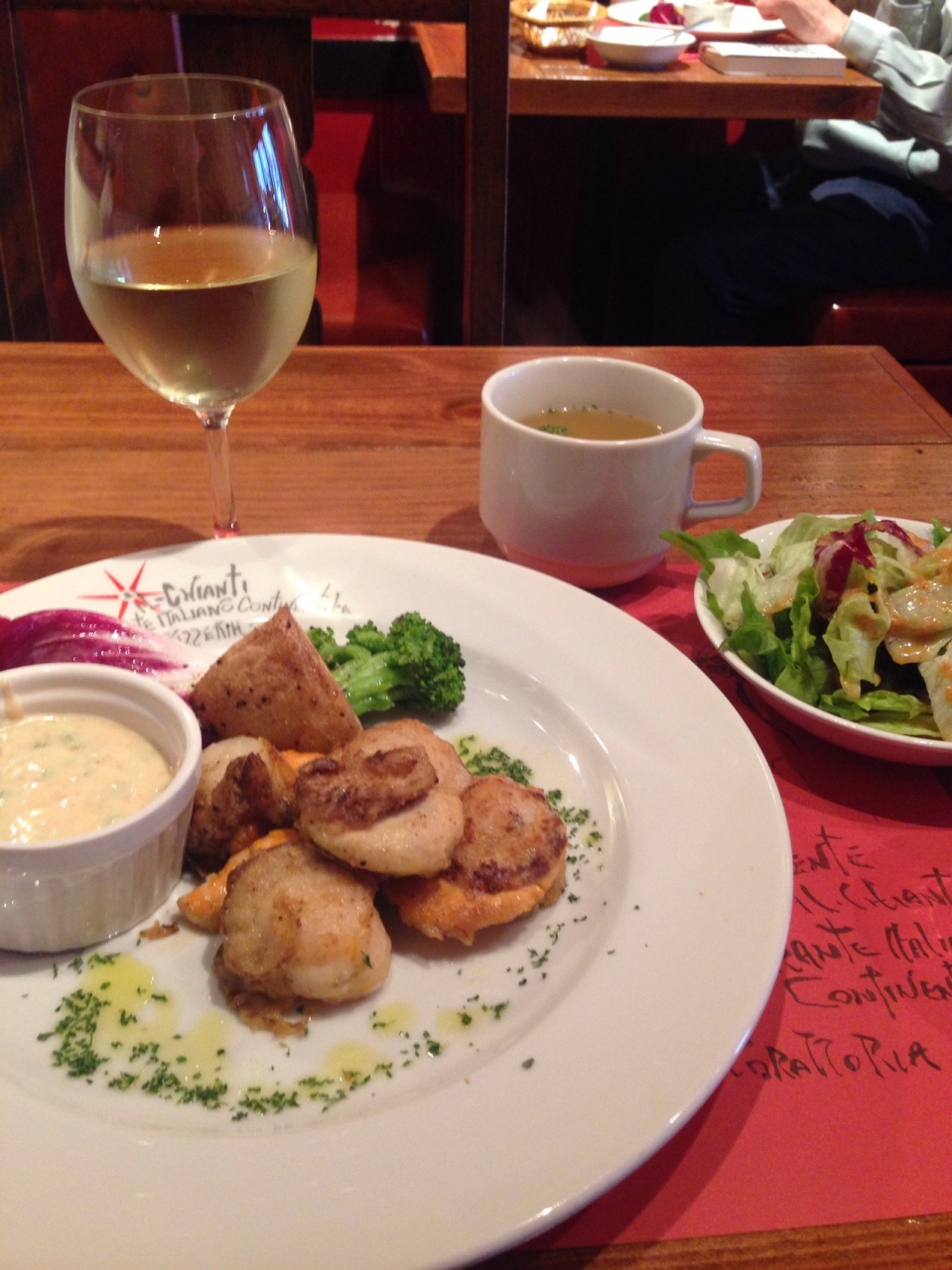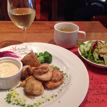 ドリンクは、プラス260円でビールやグラスワインにできるということで白ワインを注文。しかも種類を選べました~☆ちょっとお得な気分になりました。