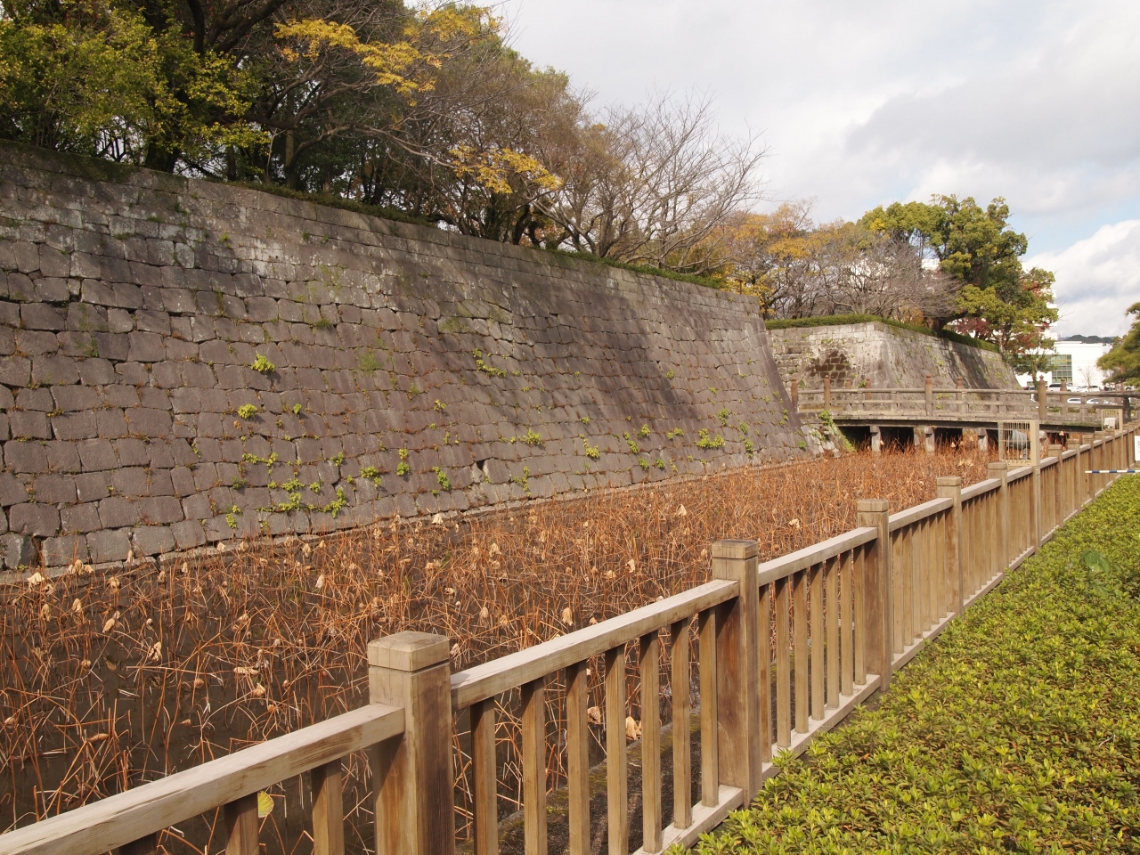主な遺構は石垣ぐらいしかありませんが篤姫の像などがあり当時をしのぶことができます。
