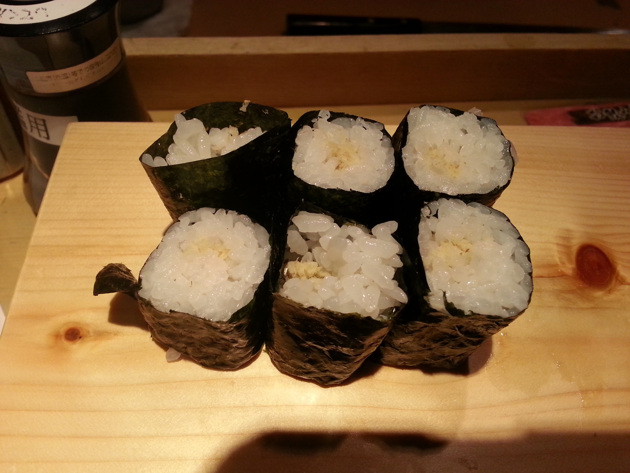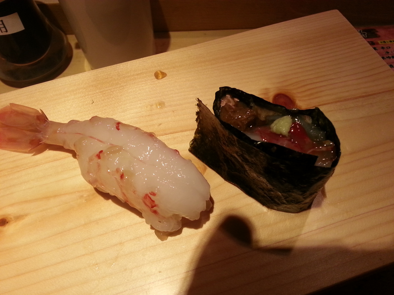 文字通りちょっとお鮨をつまみたいときに立ち寄れる立ち食いのお鮨屋さんです。立ち食いでも侮るなかれ、ネタも面白いものもあり、鵡川産シシャモの握り、ラクヨウの味噌汁、あとエビの握りはエビ味噌の軍艦と身と2種類に分けて、北寄貝はヒモと身に分けて提供するので楽しいです。