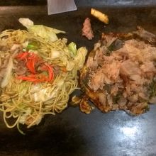 飲み屋か、ラーメン屋しかやってないような時間帯に飛び込んだので、あまり味には期待していませんでしたが、意外にも美味しく、お好み焼き、鉄板焼きとともに、生ビールが進みました。