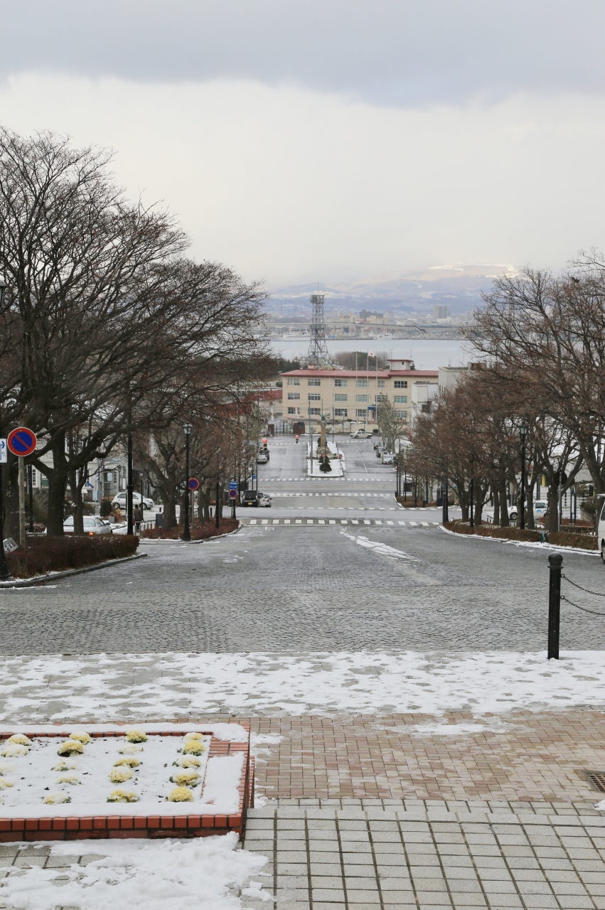 「坂の街」函館を代表する坂のひとつで、元町公園、旧函館区公会堂へ続いています。函館本道の基点でもあるそうで「基坂」。元町公園にはかつて北海道庁函館支庁があり、この辺りが函館の行政の中心だったことから「お役所坂」とも呼ばれていたそうです。