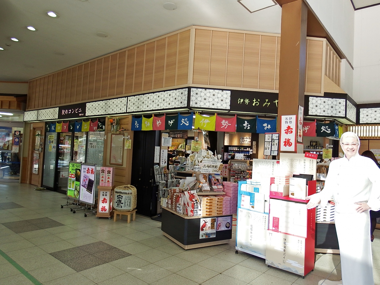 この駅のコンビニ、ベルマート伊勢市は、伊勢おみやげ処として、伊勢の名産品を豊富に取りそろえています。伊勢市駅について、すぐ飲物や食べ物を購入する飲みも便利ですし、帰りの電車に乗る直前におみやげを購入する場所としてとっても重宝します。