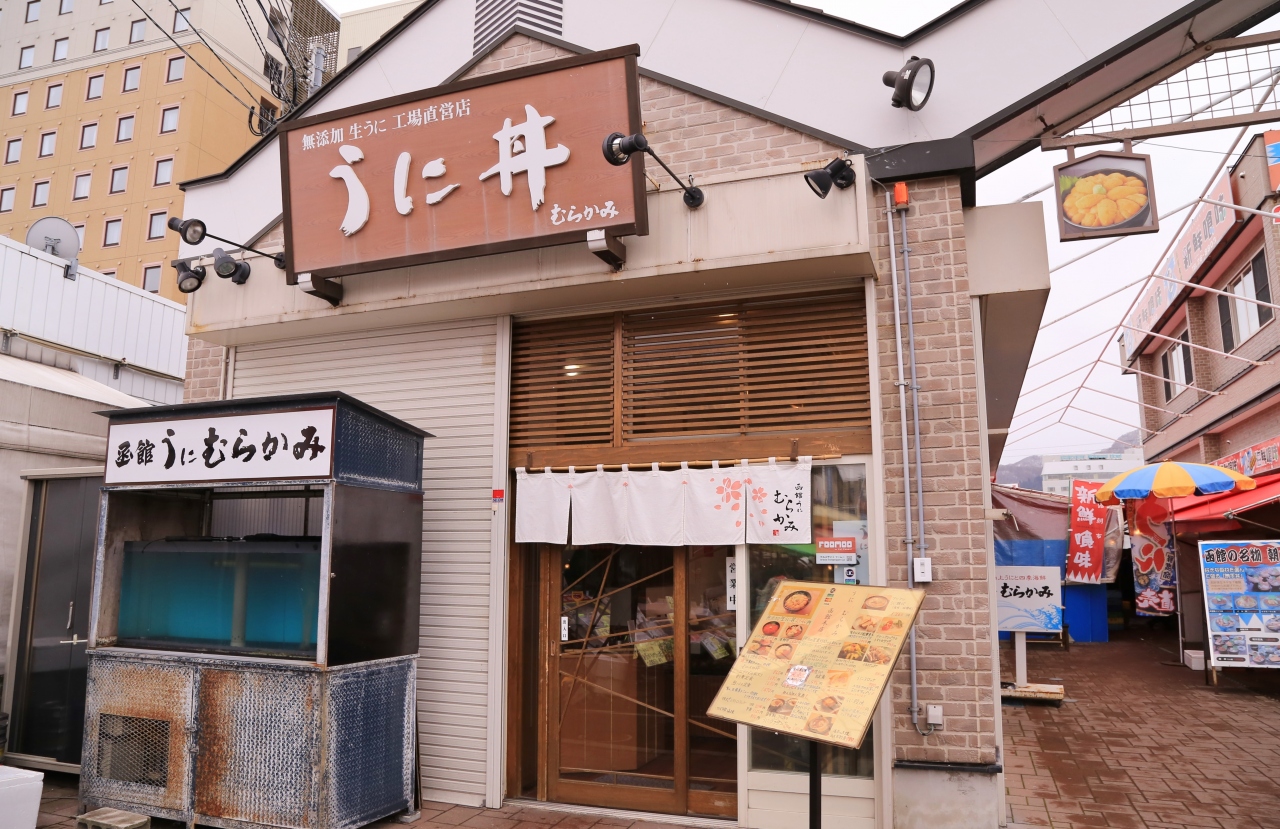 函館朝市の奥まった場所にあるウニの専門店。北海道産の無添加ウニにこだわったお店です。その時々の旬のウニを丼や殻焼き、雑炊、グラタンなどいろいろなメニューで楽しめます。またイカ刺しなどの魚介もお勧めです。活イカ刺しは透き通った身が甘く、肝も美味しかったです。人気店で並ぶこともあるため、時間に余裕をもって行かれた方が良いと思います。