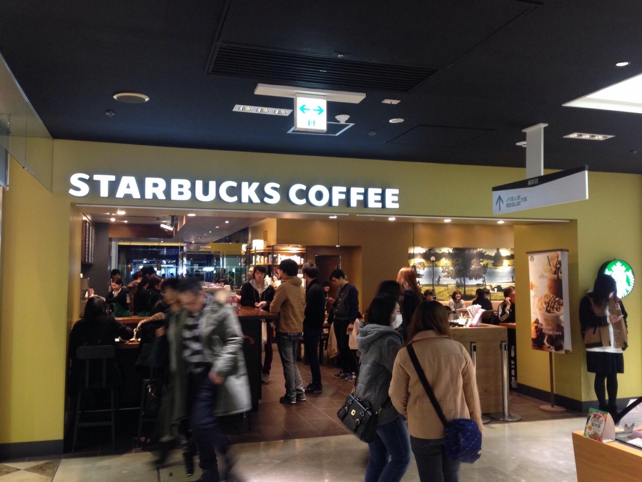新幹線開業にともなうリニューアル工事中の富山駅ビル「まりえ」1階入口にあるコーヒーチェーンのショップです。駅前はミスド以外にコーヒーショップがないことと、雪降る寒い日だったため、1日中混雑していました。