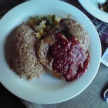 ポークやチキンのスモーク料理、ハンバーグがメインのレストラン。