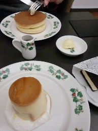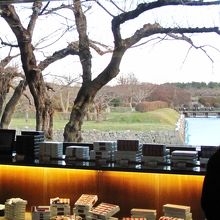 言わずと知れた六花亭の函館店ですが、店舗の立地が素晴らしく、店内に入ると正面に大きな窓。その向こうには五稜郭の桜が広がっていました。大きな窓と高い天井で開放的な店内では六花亭のスイーツを購入できるほか、喫茶エリアが併設されており、ホットケーキやプディングケーキなどがいただけました。どちらも甘さ控えめえペロリと食べてしまいました。コーヒーはサービスです。また、特定のショップでしか食べられない雪こんチーズ(チーズケーキが挟まったクッキー)も味わえました。お花見時期にはゆっくりお茶がしたくなる場所です。