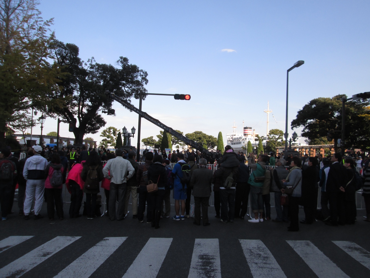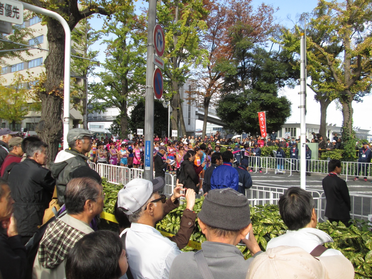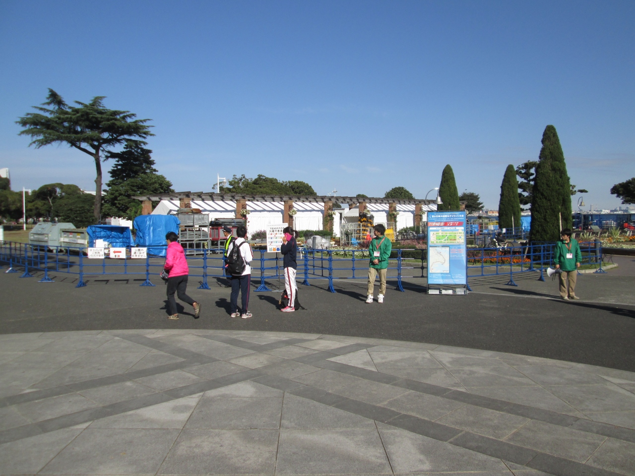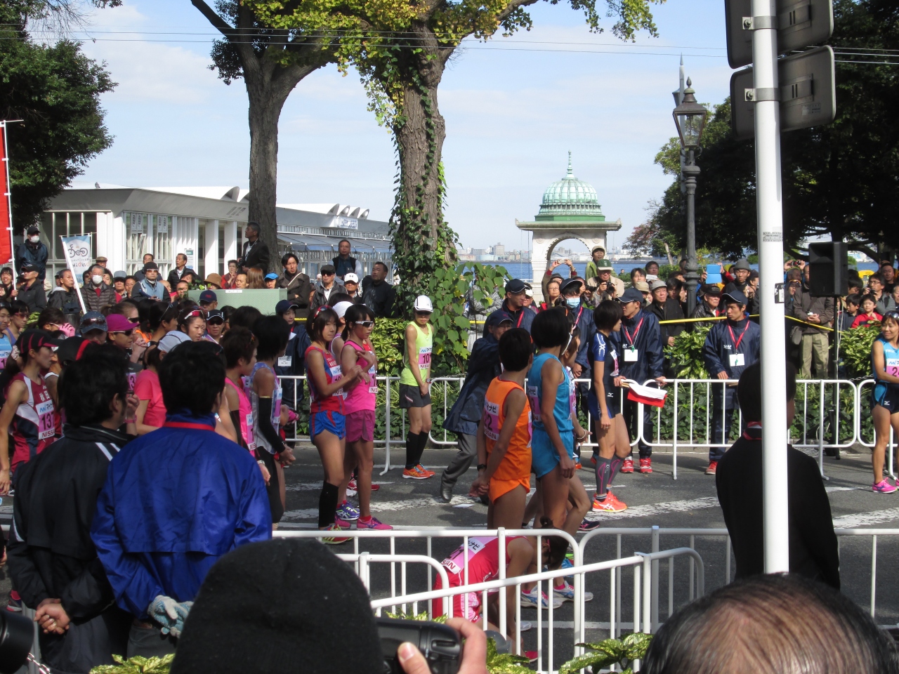 普段の山下公園は土日であっても空いていますが、イベントがあるとにぎやかになります。11/16は最後の横浜国際女子マラソンが開催されるということで、朝からイベント主催者が準備をしており、マスコミ関係者も見かけました。マラソン開始前からたくさんの見学者が来ていました。