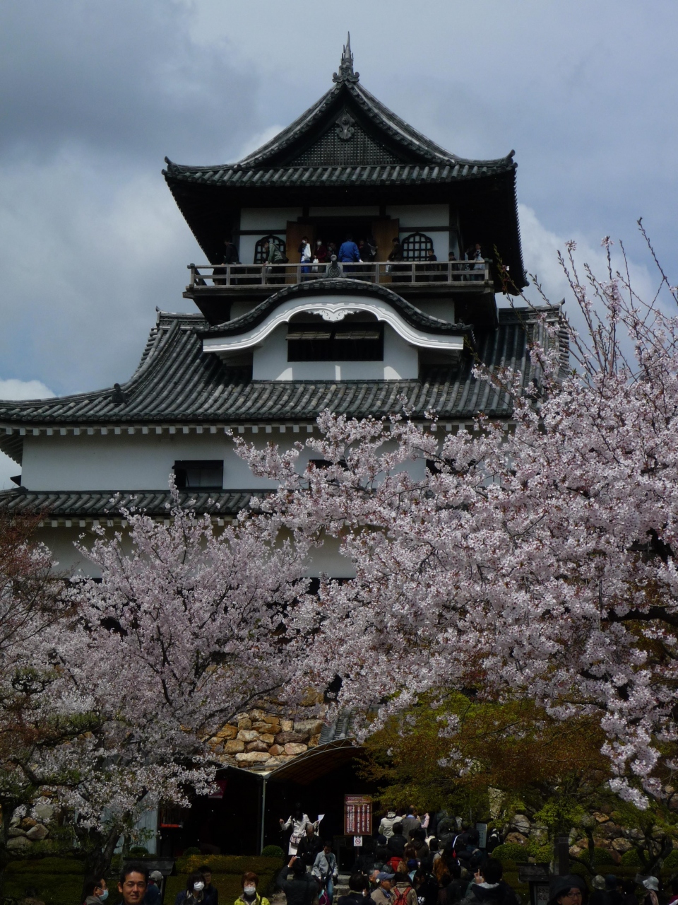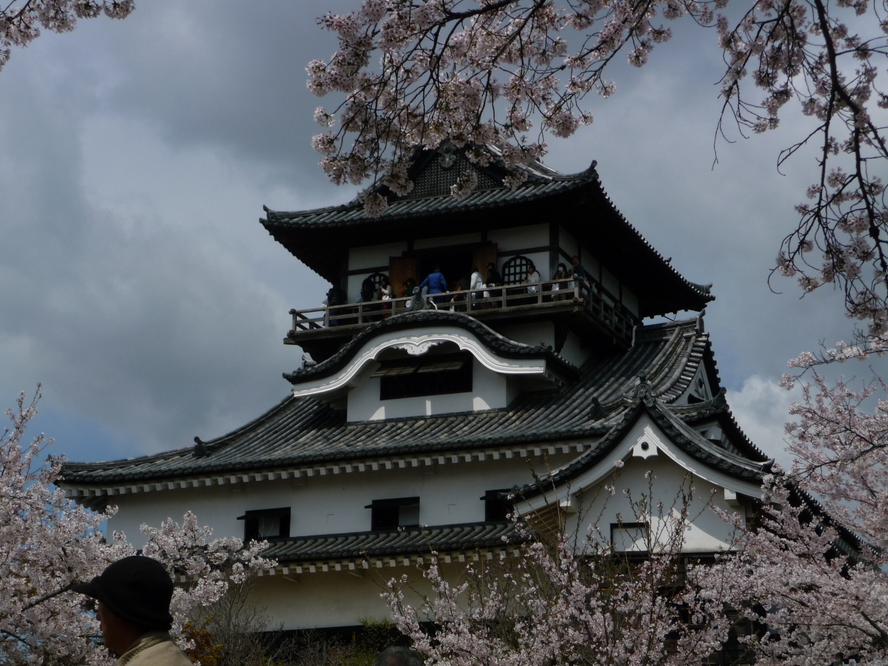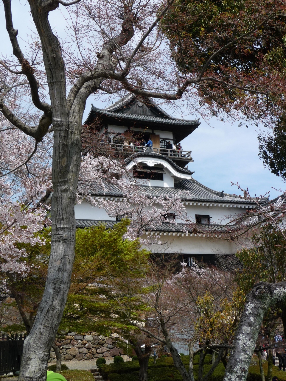 天守最上階からの眺望は、360度素晴らしい(特に、清流木曽川が美しい)が、木製の望楼床部分は、幅が狭いうえに、床面が転落防止の欄干部分に向かい緩く下り傾斜、その欄干もわずか人の腰の高さ程度、網ネットは無し、背後から押されたら、間違いなく転落! スリル満点、こわい! 多客時には、誘導・監視係員がいるのもうなずける。