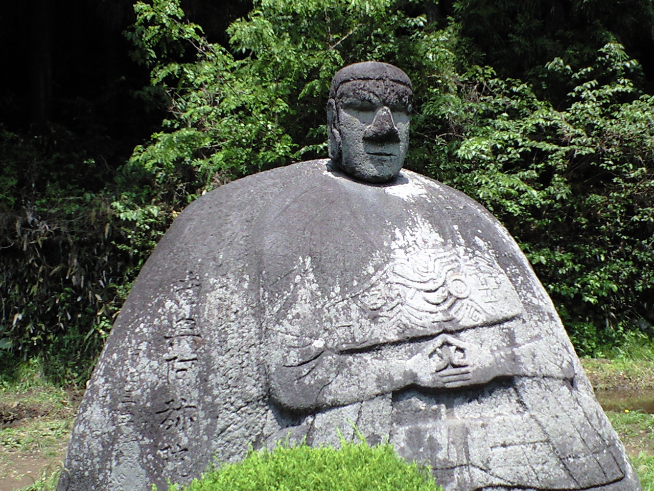 テレビなどでパワースポットとしても紹介されるのがこの石仏、特に周りに何も無くぽつんと祀られている。諏訪大社の鳥居造営のための石材にしようとノミを入れると血が流れ出たとの伝えがあるそうだ。何とも不思議な体型をした石仏です。