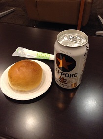 受付でソフトドリンクか缶ビールかを選ぶことができます。アルコールが無料のカードラウンジは初めてでした。缶ビールの種類は数種類あり、そちらも選ぶことができます。