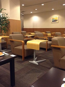 一人掛けのソファーや椅子、テーブルがあり、コンセントもありました。アロマ空気清浄機が置いてあったり、シャワールームもあり、とても快適に過ごすことのできるラウンジでした。
