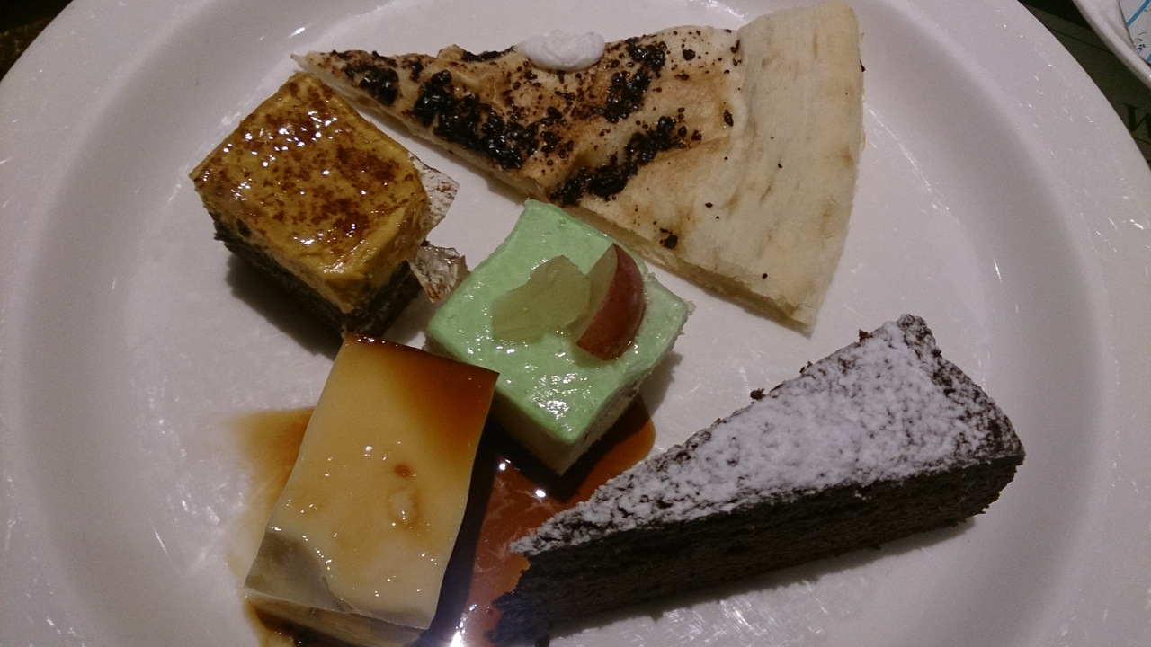 デザートもケーキやシュークリーム、プリン、アイスなどいろいろあり、甘いもの好きな私としては非常にうれしかったです。